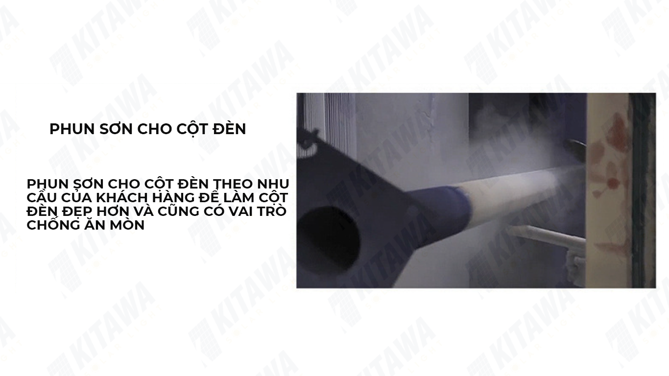 Phun sơn tĩnh điện có nghĩa là bột được tích điện âm. Dưới tác dụng của lực tĩnh điện và khí nén, bột được hấp phụ đồng đều trên phôi. Phương pháp này có thể làm cho bề mặt của cột đèn đều và mịn hơn. Tất nhiên, phun sơn tĩnh điện cũng có 2 phương pháp là phun sơn và phun nhựa.