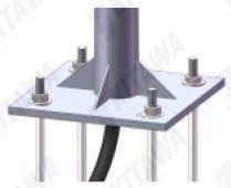 e). Dùng cần trục để dựng cột đèn . Đảm bảo rằng cột đèn thẳng đứng trên tấm đáy. Cố định nó bằng bu lông.