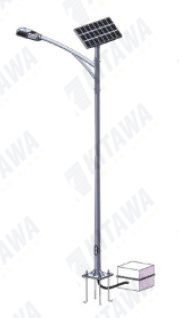 b)Lắp đặt và cố định giá đỡ năng lượng mặt trời ở đầu cột đèn.