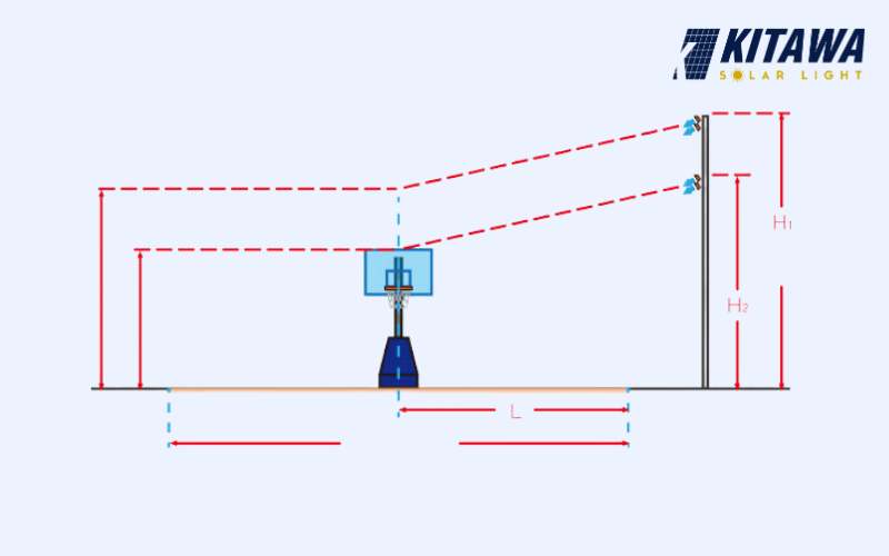 Để thực hiện cách lắp đặt đèn sân bóng rổ đạt kết quả tốt. Độ cao treo đèn phải đáp ứng đồng thời 2 điều kiện sau:
