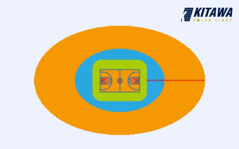 Việc bố trí đèn cần đảm bảo ánh sáng được phân bố đều trên toàn bộ sân bóng rổ. Đèn nên được sắp xếp sao cho ánh sáng không bị tập trung quá mức tại một khu vực và giảm thiểu hiện tượng chói lóa. Phân bổ đèn ở các góc sân và khu vực trung tâm để tạo ra ánh sáng đồng đều và đồng nhất trên toàn bộ sân. Điều này giúp các vận động viên thi đấu dễ dàng hơn mà không bị ảnh hưởng bởi ánh sáng không đều.