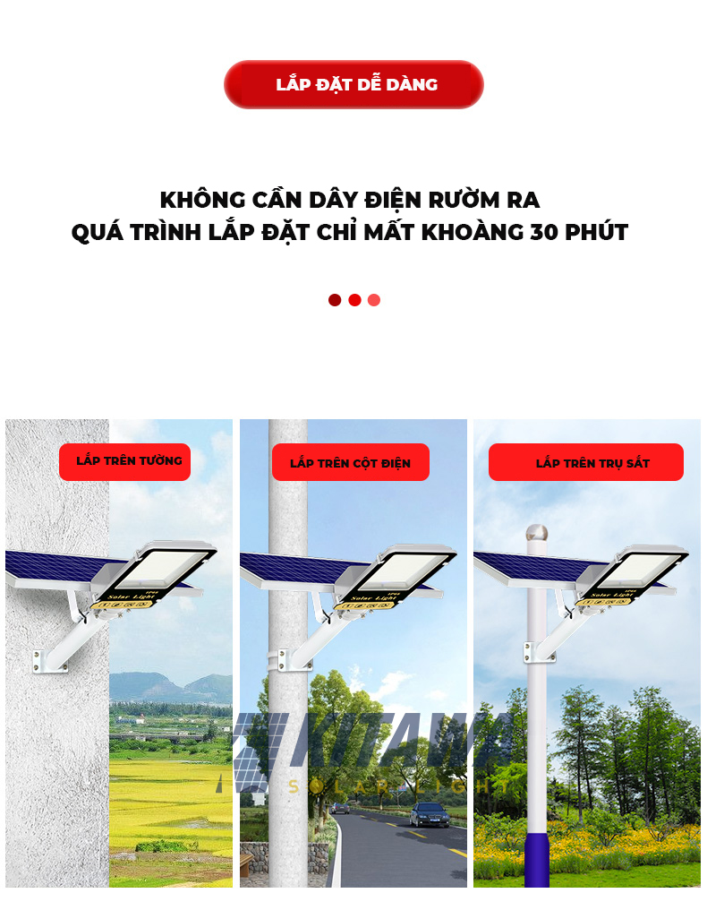 - Tiện lắp đặt: Đèn năng lượng mặt trời dễ lắp đặt, bố trí ở các vị trí trong và ngoài ngôi nhà mà không cần phải kéo dây, khoét rãnh.