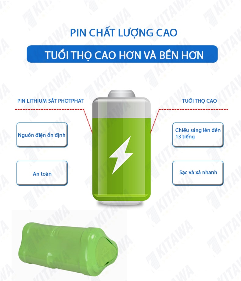 - Một phần rất quan trọng đáng để quan tâm đến khi lựa chọn đèn năng lượng mặt trời là PIN, đèn sử dụng lâu hay không phụ thuộc rất nhiều vào dung lượng mà tuổi thọ PIN.