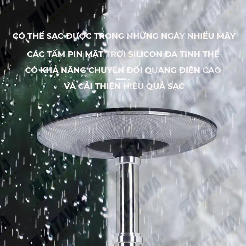 Đèn Năng Lượng Mặt Trời KITAWA Hình Đĩa Bay Kim Cương UFO 600W được trang bị chuẩn IP65 có khả năng chống bụi và chống nước vượt trội để bạn yên tâm lắp đặt ngoài trời và sử dụng trong mọi điều kiện thời tiết
