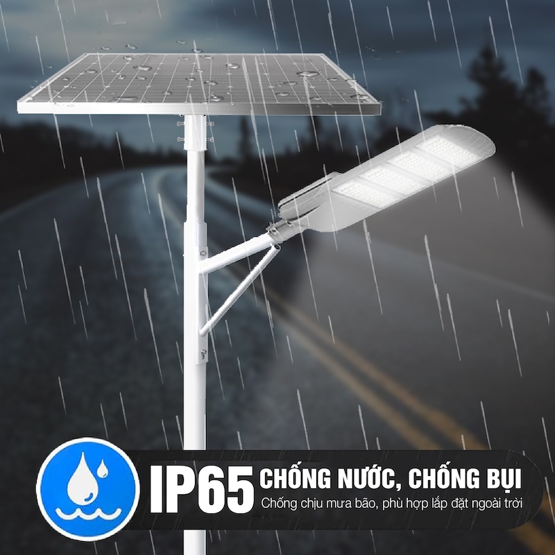 Chỉ số bảo vệ của đèn đường công trình năng lượng mặt trời 150W - CT.BC16.150 là IP65, đảm bảo khả năng hoạt động ổn định ngoài trời mà không bị ảnh hưởng bởi nước và bụi. Dưới các bài kiểm tra tác động của nước từ mọi hướng, đèn vẫn duy trì khả năng hoạt động mạnh mẽ và không phải chịu bất kỳ hư hại nào.