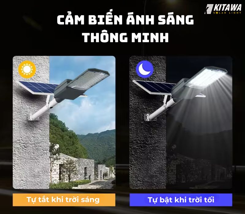 Tích hợp cảm biến ánh sáng: Đèn được trang bị cảm biến ánh sáng tự động bật sáng vào ban đêm và tắt khi trời sáng.