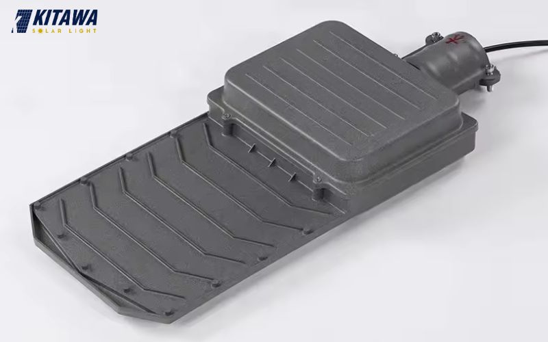 Thân đèn của BC12.200 được làm từ hợp kim nhôm đúc nguyên khối, đảm bảo độ cứng cáp và chắc chắn. Thiết kế có rãnh tỏa nhiệt được tích hợp vào thân đèn, giúp bảo vệ đèn khỏi những tác động của thời tiết khắc nghiệt như mưa bão và tác động trực tiếp của ánh nắng mặt trời. Nhờ những cải tiến này, đèn đường năng lượng mặt trời mắt ngọc 200W - BC12.200 đạt được độ bền cao và hiệu suất ổn định trong thời gian dài sử dụng.