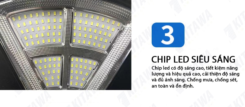 Đèn cũng được trang bị Chip Led chất lượng. Với 900 chip giúp tuổi thọ cao hơn so với các loại Led thông thường khác và giữ được mức độ đều màu cao hơn. Tuổi thọ LED là hơn 50.000 giờ (tương đương 12 năm sử dụng). Ngoài ra đèn thiết kế mỗi chíp Led sẽ có một thấu kính khuếch đại gắng kèm giúp phân bố ánh sáng được đồng đều hơn.