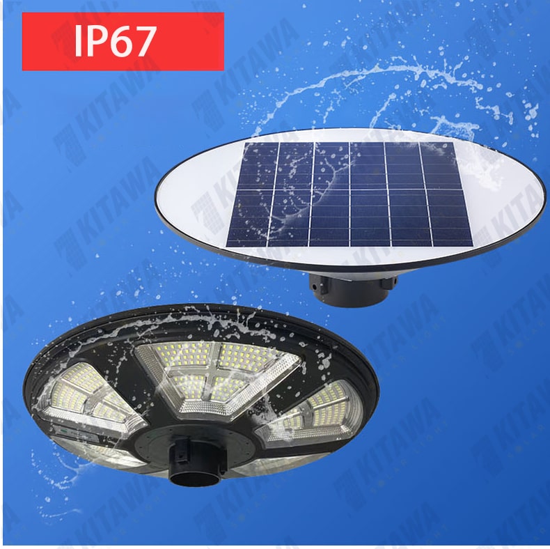 Đèn năng lượng hình đĩa bay UFO 600W được trang bị chuẩn IP67 có khả năng chống bụi và chống nước vượt trội để bạn yên tâm lắp đặt ngoài trời và sử dụng trong mọi điều kiện thời tiết.