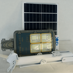 - Đèn đường Led năng lượng mặt trời 100W tích hợp chế độ cảm biến ánh sáng thông minh, tự động sạc pin vào ban ngày và tự động chiếu sáng vào ban đêm.