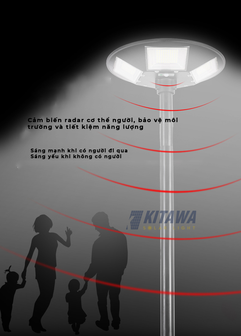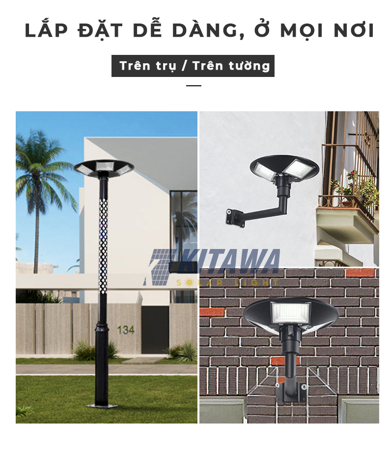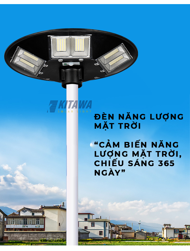 Đèn liền thể năng lượng mặt trời UFO 500W Kitawa UF1500 có thể chiếu sáng đường đi biệt thự, khách sạn, khu nghỉ dưỡng, hành lang, bờ tường rào, và đường nhỏ ở các vùng nông thôn mới…