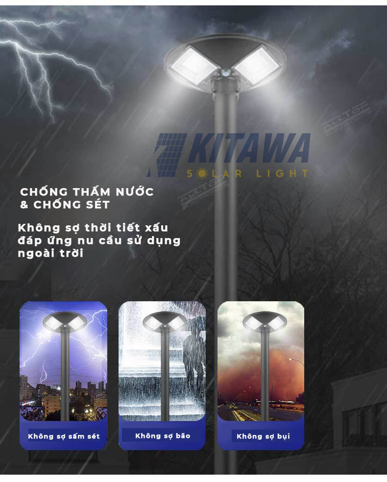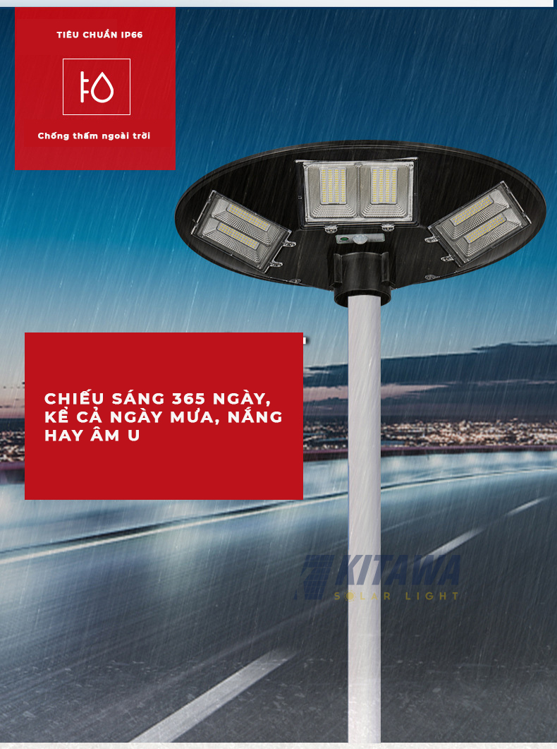 Đèn đĩa bay năng lượng mặt trời 500W Kitawa UF1500 được trang bị chuẩn IP66 có khả năng chống bụi và chống nước vượt trội để bạn yên tâm lắp đặt ngoài trời và sử dụng trong mọi điều kiện thời tiết
