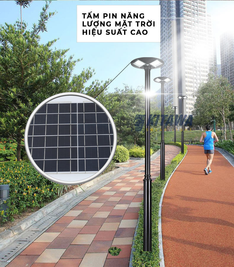 - Tấm pin năng lượng mặt trời chất lượng cao và có diện tích lớn, hiệu suất chuyển đổi năng lượng cao, đèn tích trữ năng lượng nhanh cho quá trình hoạt động tốt nhất. Ngoài ra, tấm pin còn được điều chỉnh theo hướng nhận ánh sáng tốt nhất.