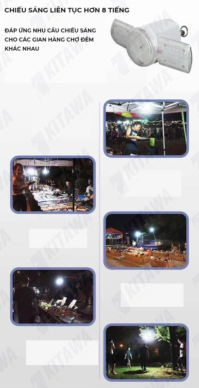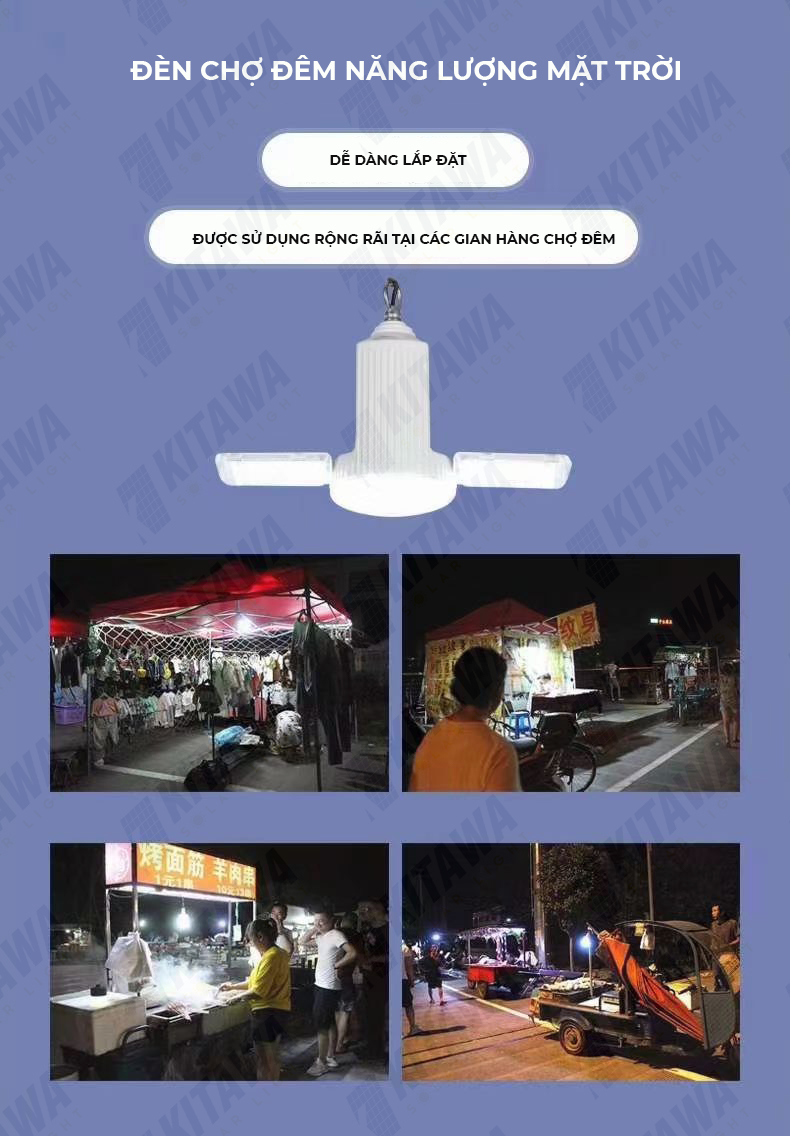 Đèn Năng Lượng Mặt Trời dành cho các gian hàng chợ đêm được thiết kế linh hoạt, có thể mở theo nhiều hình dạng khác nhau tùy ý người dùng lựa chọn