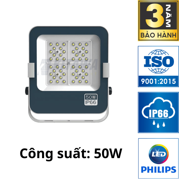 Đèn pha LED điện 50W AC.DP06.50 sử dụng Chip LED Philips cao cấp, cho khả năng chiếu xa tốt hơn. Đây là dòng sản phẩm có hiệu suất phát quang chiếu sáng tốt và tiết kiệm điện năng gấp 3 lần đèn halogen. Sản phẩm đang được ứng dụng rộng rãi trong nhiều không gian chiếu sáng hiện nay.