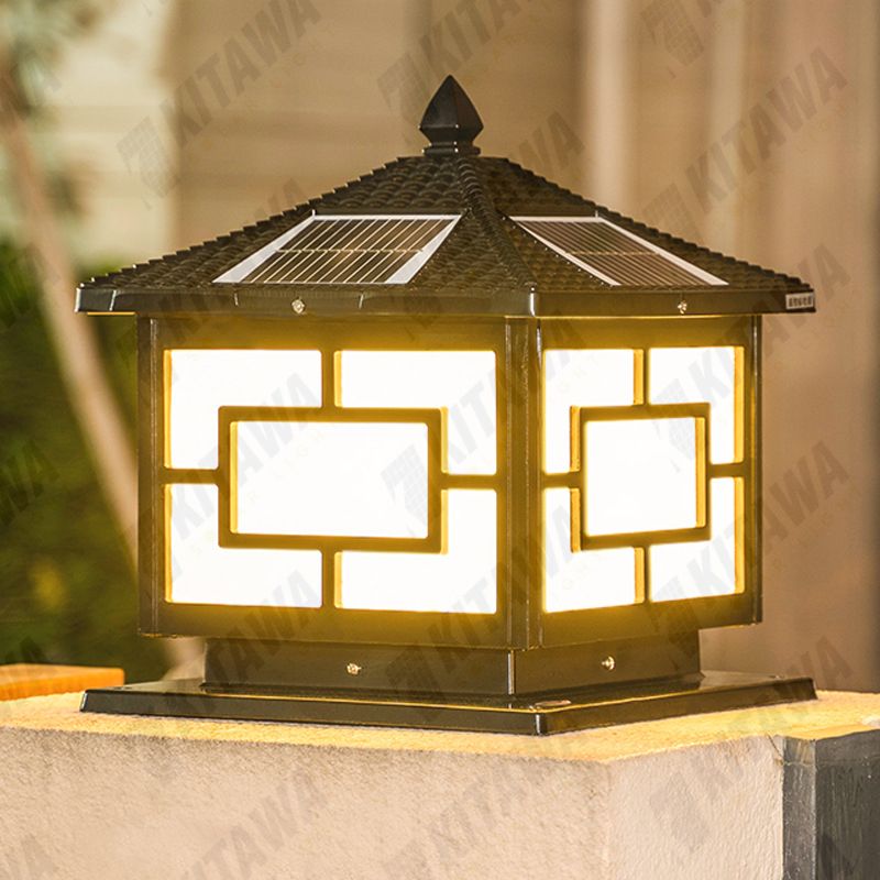 Đèn trụ cổng năng lượng mặt trời KITAWA SV73 là một mẫu đèn trụ cổng thiết kế cổ điển nhưng không quá rườm rà trong thiết kế mang đến cho sản phẩm vừa có vẻ đẹp cứng rắn, bền bỉ nhưng cũng không kém phần sang trọng và tinh tế. Đèn được thiết kế theo phong cách cổ điển phương Đông do đó tại nước ta mẫu đèn này có thế thích hợp với đa dạng không gian khác nhau. Có thể làm đèn đặt ở hai trụ cổng hoặc đèn trụ hàng rào đều được.