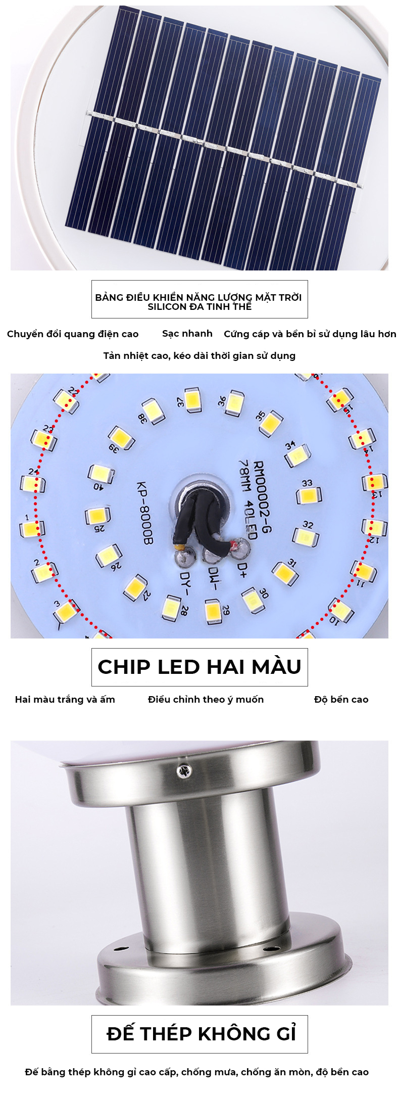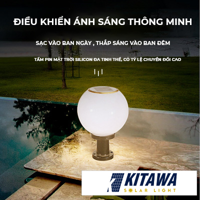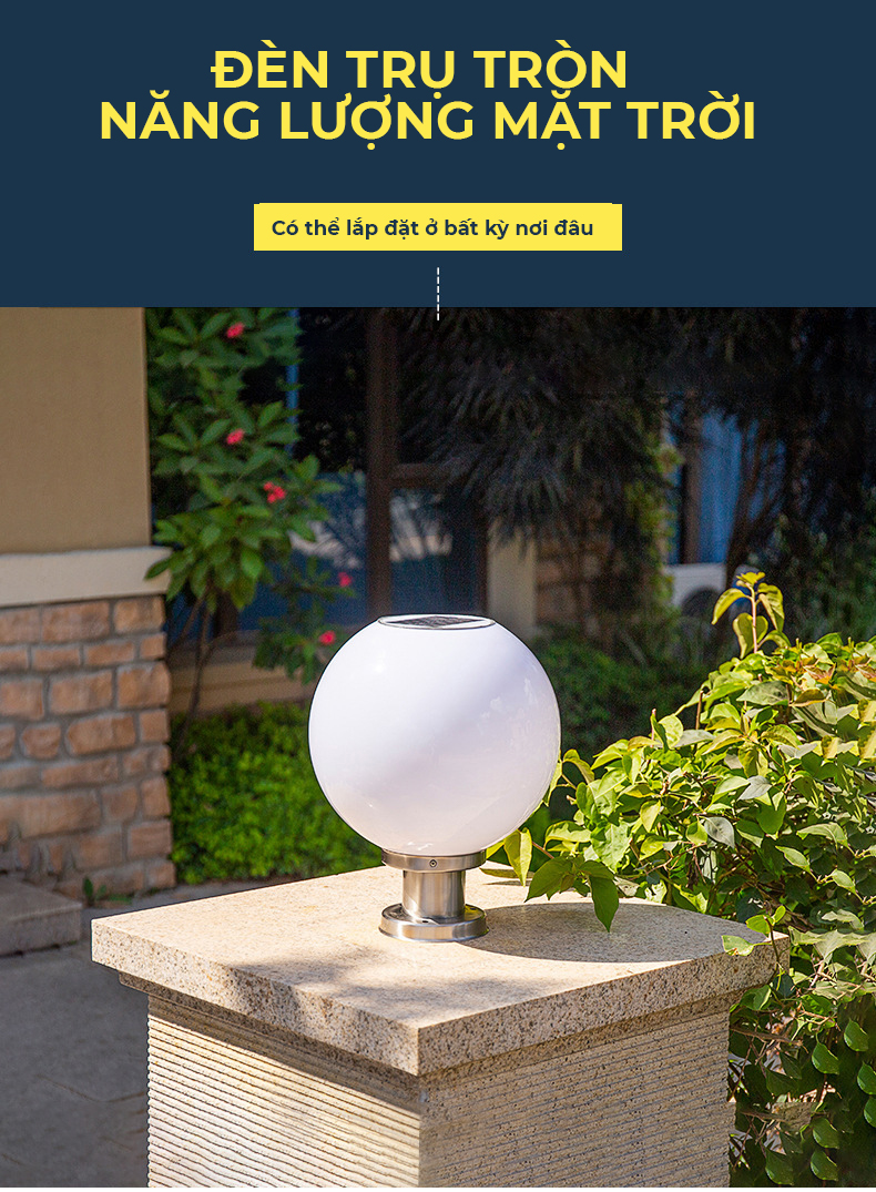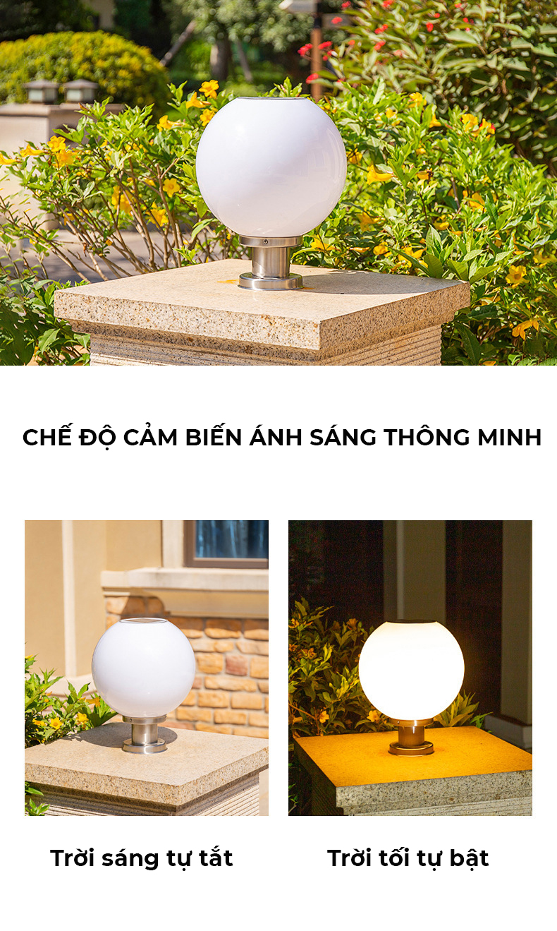 Sản phẩm đèn cổng trụ năng lượng mặt trời quá hợp lý để sử dụng chiếu sáng sân vườn có lưu trữ sẵn pin năng lượng mặt trời trên thân đèn, với chế độ thông minh tự động bật chiếu sáng vào ban đêm, và tự động ngắt vào buổi sáng, sạc pin từ ánh sáng năng lương mặt trời vào ban ngày, dễ lắp đặt, tiện lợi và an toàn cho quá trình sử dụng.