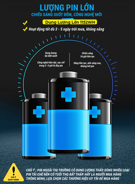 - Pin lithium: Đây là một bộ phận trong đèn năng lượng mặt trời, giúp đèn tích trữ điện năng và phục vụ hoạt động của đèn năng lượng mặt trời. Vì vậy, khi mua đèn năng lượng mặt trời, cần phải kiểm tra kỹ về thông số lưu trữ của pin, tuổi thọ và thời gian sạc đầy… Hiện nay Pin lithium photphase đang là lựa chọn hàng đầu đối với các dòng đèn năng lượng mặt trời.