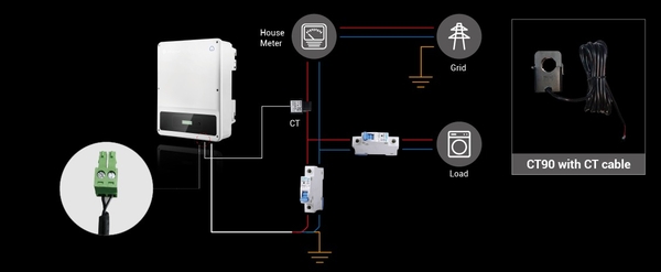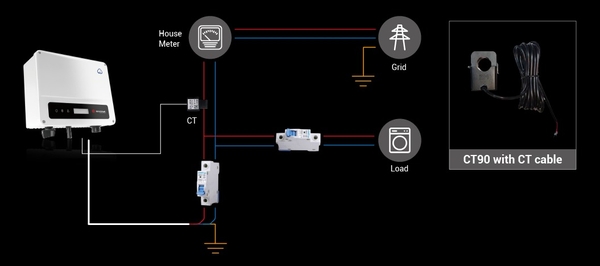 ● CT90 là cần thiết và chỉ có ở GoodWe. Dòng điện qua các tải phải nhỏ hơn 90A.