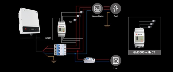 ● GM3000 là cần thiết và chỉ có ở GoodWe. Dòng điện qua các tải phải nhỏ hơn 120A trên mỗi pha.