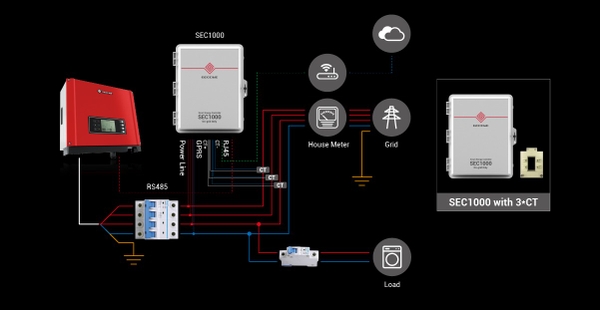 ● SEC1000 là cần thiết và chỉ có ở GoodWe. Tỷ lệ CT phải là 250 / 5A trên mỗi pha.