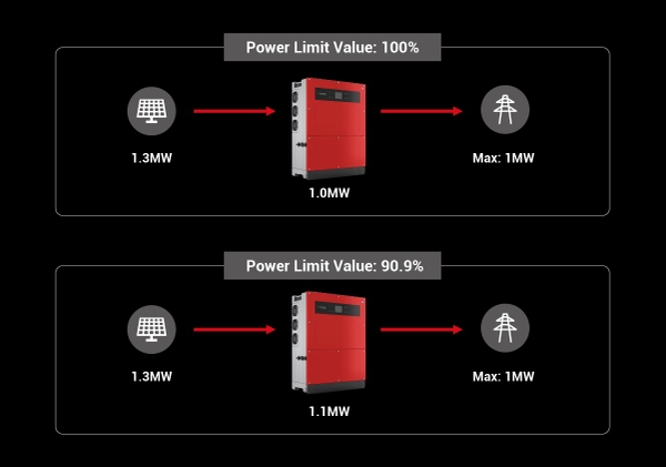 ● Giới hạn công suất đầu ra biến tần, áp dụng cho trường hợp DC oversizing và không kết nối tải