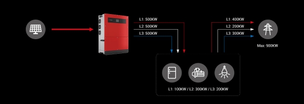 ● Giới hạn công suất không cân bằng trên mỗi pha không chỉ là đầu ra lưới foron mà còn có sẵn cho đầu ra dự phòng