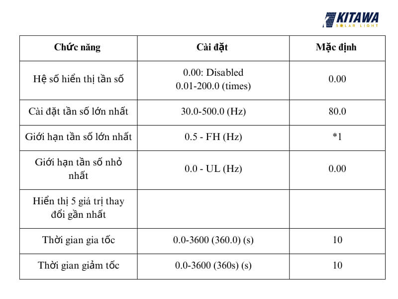Đặt giới hạn tần số sẽ cho phép động cơ Biến tần chạy nhanh nhất với đơn vị Hz. Ví dụ, khi đặt giới hạn tần số là 40Hz thì động cơ sẽ chạy tối đa 40Hz, với n=60×40/2 = 1200 Vòng/Phút. Giới hạn tần số có thể cài tùy ý trong phạm vi động cơ thường là 1-60 Hz là được.