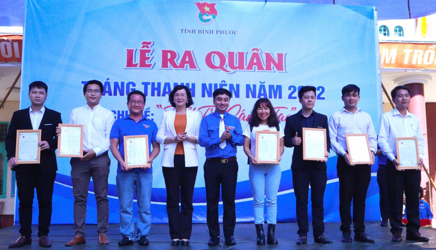 Lễ ra quân tháng Thanh niên 2022 của Tỉnh đoàn Bình Phước có sự tham dự của đồng chí Trần Tuyết Minh - UV BTV Tinh ủy, Phó Chủ tịch UBND tinh; đồng chí Trần Quốc Duy - UV BCH TW Đoàn, TUV, Bí thư Tỉnh Đoàn; đồng chí - Huỳnh Thị Bé Năm - Phó Giám đốc Sở Nội vụ; đồng chí Tạ - Thu Thủy - Phó Bí thư Thường trực Thị ủy Bình Long; đồng chí Lê Tấn Quang - Phó Bí thư Đảng uỷ, Chủ tịch Công đoàn - Phó Giám đốc Công ty Điện lực tỉnh và đại diện các nhà hảo tâm, nhà tài trợ và đông đảo đoàn viên, thanh niên địa bàn thị xã Bình Long.