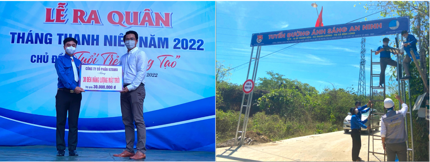 Tại buổi lễ ra quân, KITAWA đã tài trợ 30 chiếc đèn năng lượng mặt trời trị giá 30.000.000đ cho Tỉnh đoàn Bình Phước. 30 chiếc đèn này được lắp đặt ở Tuyến đường ánh sáng an ninh thuộc tổ 9-10 ấp Thanh Hòa - xã Thanh Lương - Thị xã Bình Long - Tỉnh Bình Phước.