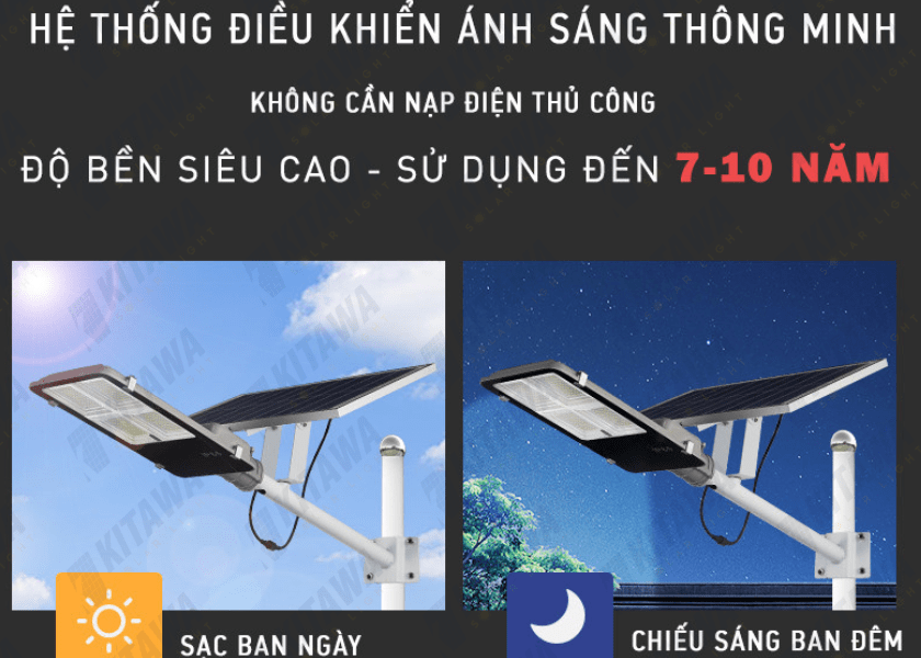 | Thời gian chiếu sáng | Đèn năng lượng mặt trời phát sáng liên tục từ 10 – 12 giờ |