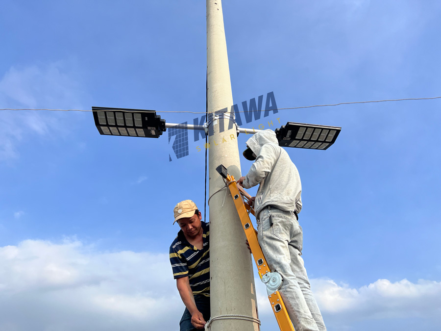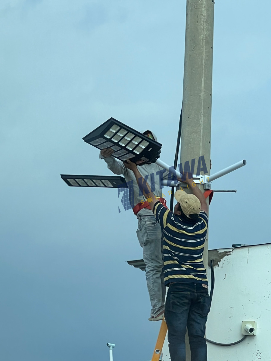 Việc lắp đặt đèn năng lượng mặt trời được các anh em kỹ thuật tập trung tối đa, quá trình lắp đặt diễn ra dưới trời nắng gắt nhưng không cũng không làm khó cho đội ngũ kỹ thuật lắp dặt của Kitawa