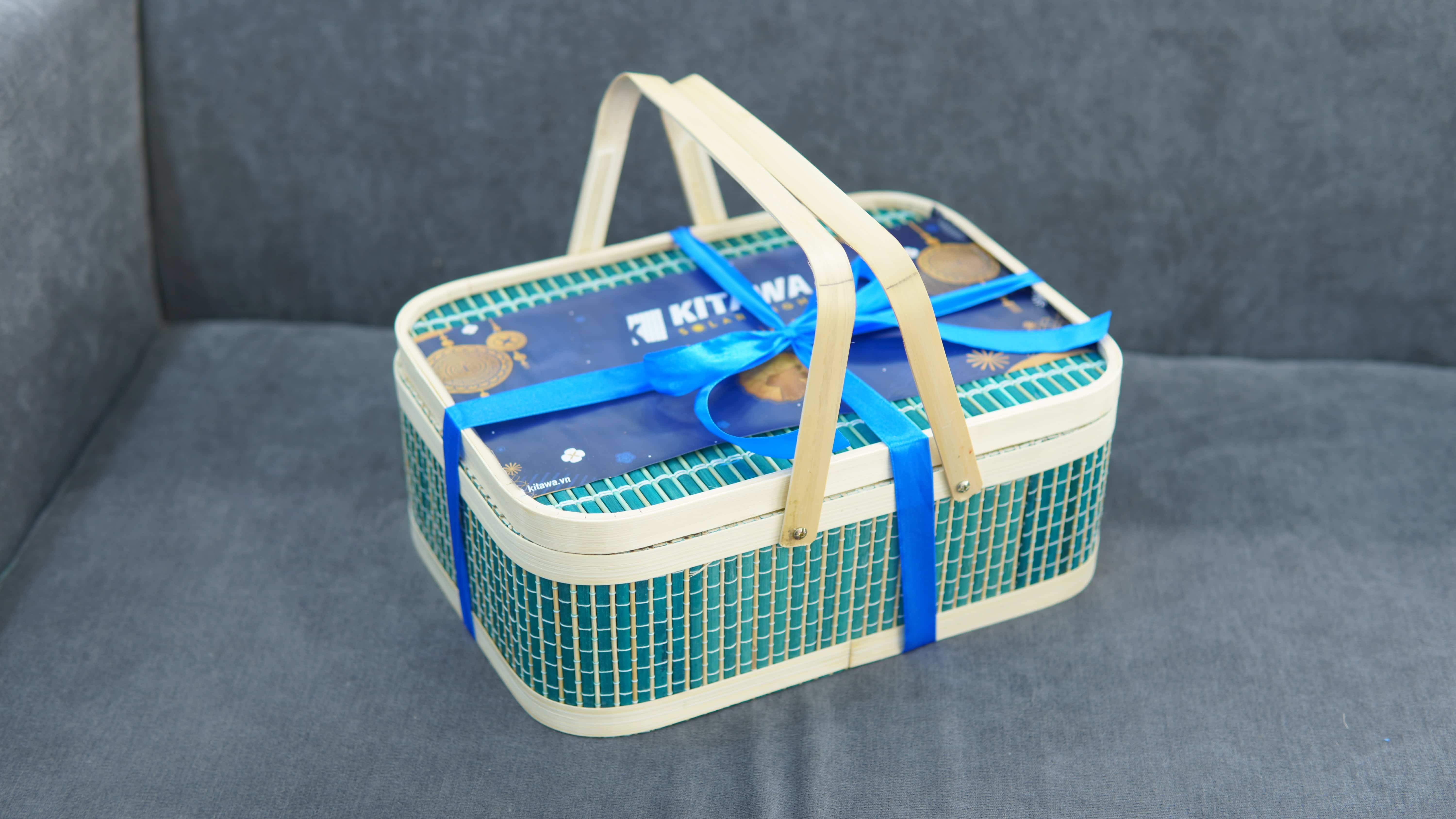 Năm nay, thay vì tặng tặng bánh trong các hộp giấy truyền thống, Kitawa chọn riêng cho mình chủ đề bánh trung thu mang dấu ấn bảo vệ môi trường với chủ đề ECO. Chất liệu giỏ bánh được làm bằng những sợi mây tre dẻo dai, đính kết vô cùng công phu và nổi bật.