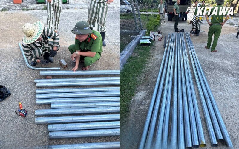 Khảo sát và đánh giá tình hình thực tế: Trước khi bắt đầu triển khai lắp đặt, đội ngũ kỹ thuật của KITAWA tiến hành khảo sát chi tiết tại đồn công an để đánh giá nhu cầu chiếu sáng, điều kiện môi trường và các yếu tố đặc thù như diện tích, mật độ ánh sáng, cũng như tình hình an ninh. Đây là bước quan trọng để xác định loại đèn phù hợp và lựa chọn vị trí lắp đặt hiệu quả nhất.