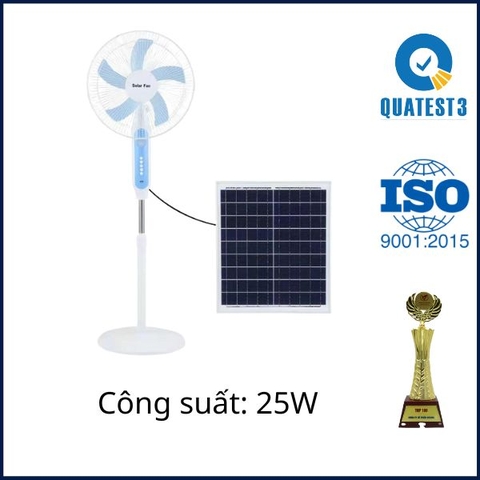Cái tên đã nói lên quạt dùng năng lượng mặt trời tạo ra điện để quạt chạy. Trong những ngày hè nóng nực ở nước ta thì lượng điện tiêu thụ cho quạt, các thiết bị về làm mát như điều hòa hay tủ lạnh rất nhiều. Nó làm cho lượng điện bị quá tải giải pháp là dùng năng lượng khác ngoài lưới điện nhà nước. Quạt điện năng lượng mặt trời sử dụng hoàn toàn bằng năng lượng mặt trời nguồn năng lượng miễn phí từ thiên nhiên. Bạn sẽ không phải sợ khi mất điện đột ngột vì quá tải trong những ngày hè.